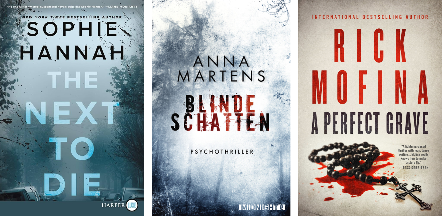 Examples of mystery/thriller book covers.